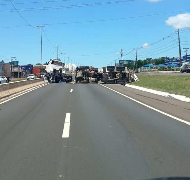 O acidente aconteceu por volta das 12h20 no km 128 da rodovia, sentido sul. Uma carreta Volvo placa de Chapecó acabou tombando e destruindo parte da mureta. Felizmente, o motorista não se feriu. As imagens da câmera de segurança deste veículo gravaram o momento da ocorrência.