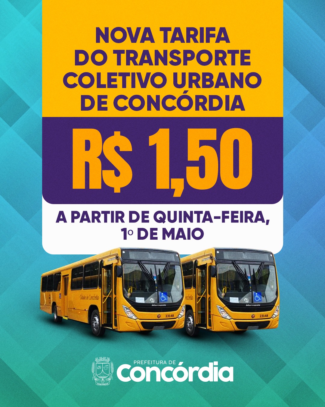 A partir desta quinta-feira, 1º de maio, a passagem do transporte coletivo urbano de Concórdia passa a ser de R$ 1,50.