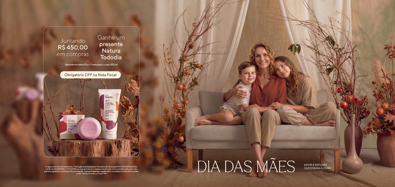 Os consumidores que atingirem o valor exigido poderão trocar os cupons fiscais por um kit da Natura, da linha Tododia Romã e Flor de Amora, composto por creme corporal de 200 ml e sabonete em barra de 90 g. Ao todo, são 2.500 unidades disponíveis, com limite de um brinde por CPF.