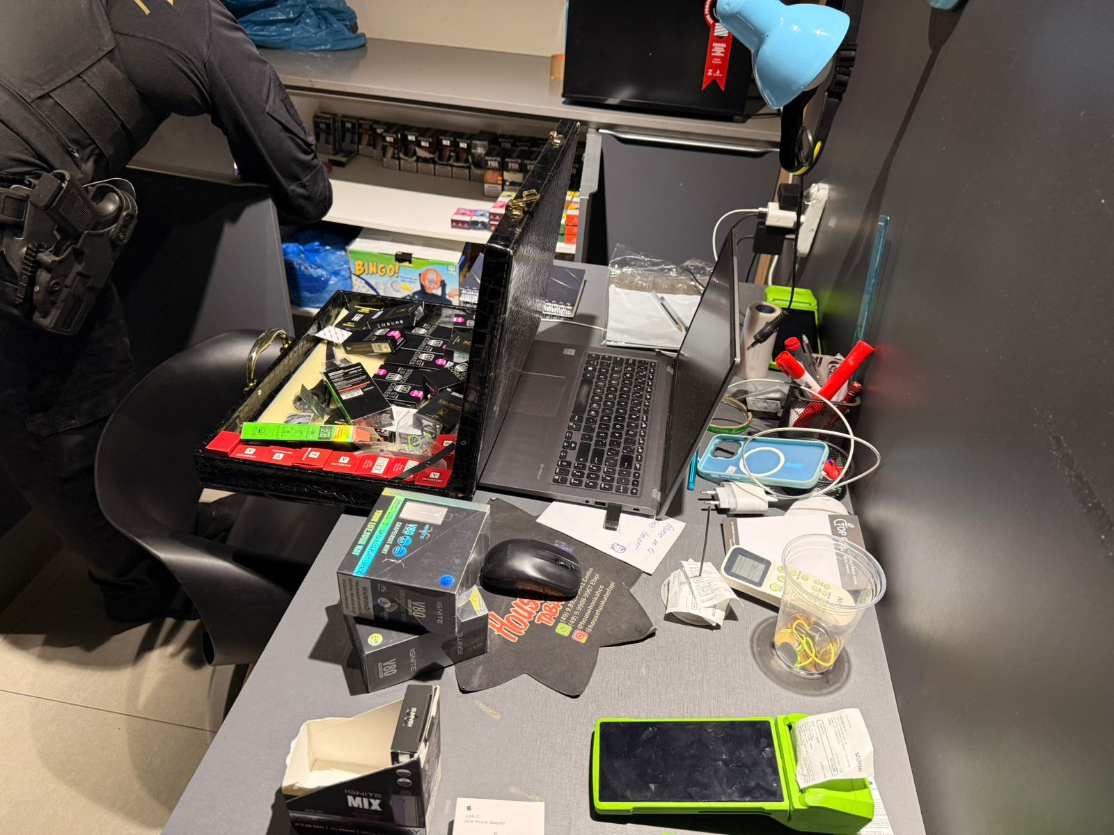 Ao todo, foram cumpridos oito mandados de busca e apreensão em endereços residenciais e comerciais do município. As investigações apontaram que os suspeitos utilizavam tanto lojas físicas, como tabacarias e estabelecimentos de eletrônicos, quanto perfis em redes sociais para vender produtos de origem estrangeira sem a devida regularização.