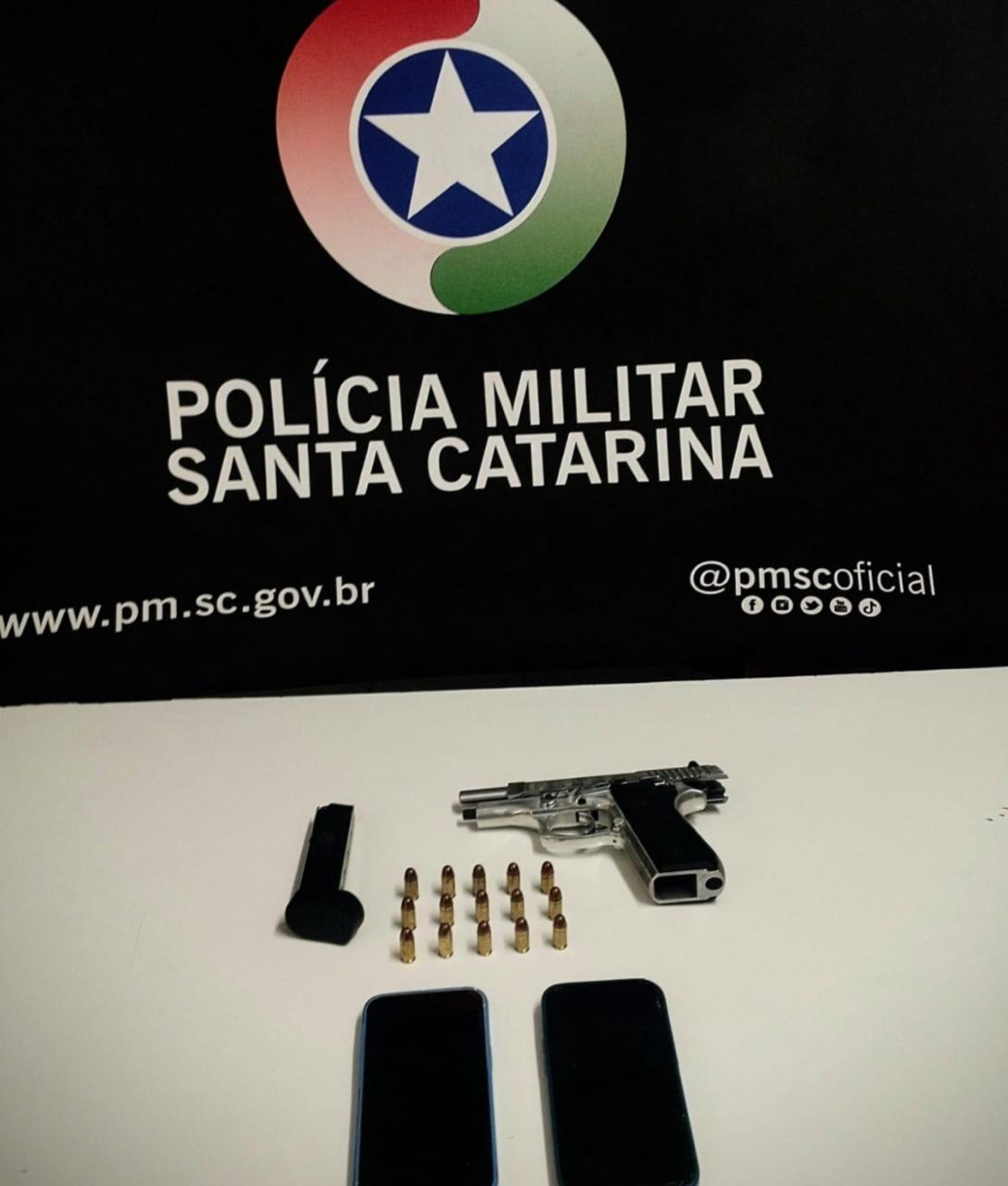 Durante rondas de rotina, uma guarnição da Polícia Militar abordou um veículo Toyota Hilux com placas de Xanxerê. O carro era conduzido por um homem de 25 anos e tinha como passageiro outro homem de 22 anos. Na busca pessoal, nada de ilícito foi encontrado com os suspeitos. No entanto, durante a vistoria no interior do veículo, os policiais localizaram no porta-luvas uma pistola PT 380 com a numeração suprimida, acompanhada de um carregador municiado com 15 munições.