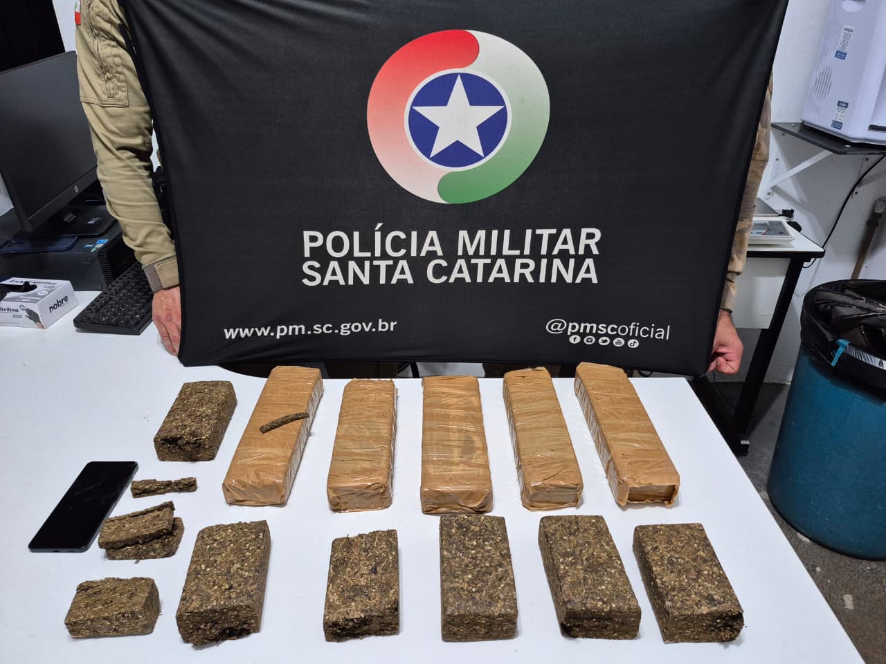 Ao todo, foram apreendidos 7,5 quilos de maconha, um celular e o veículo utilizado na ação. Os suspeitos foram encaminhados à Central de Plantão Policial, onde permaneceram à disposição da autoridade policial.