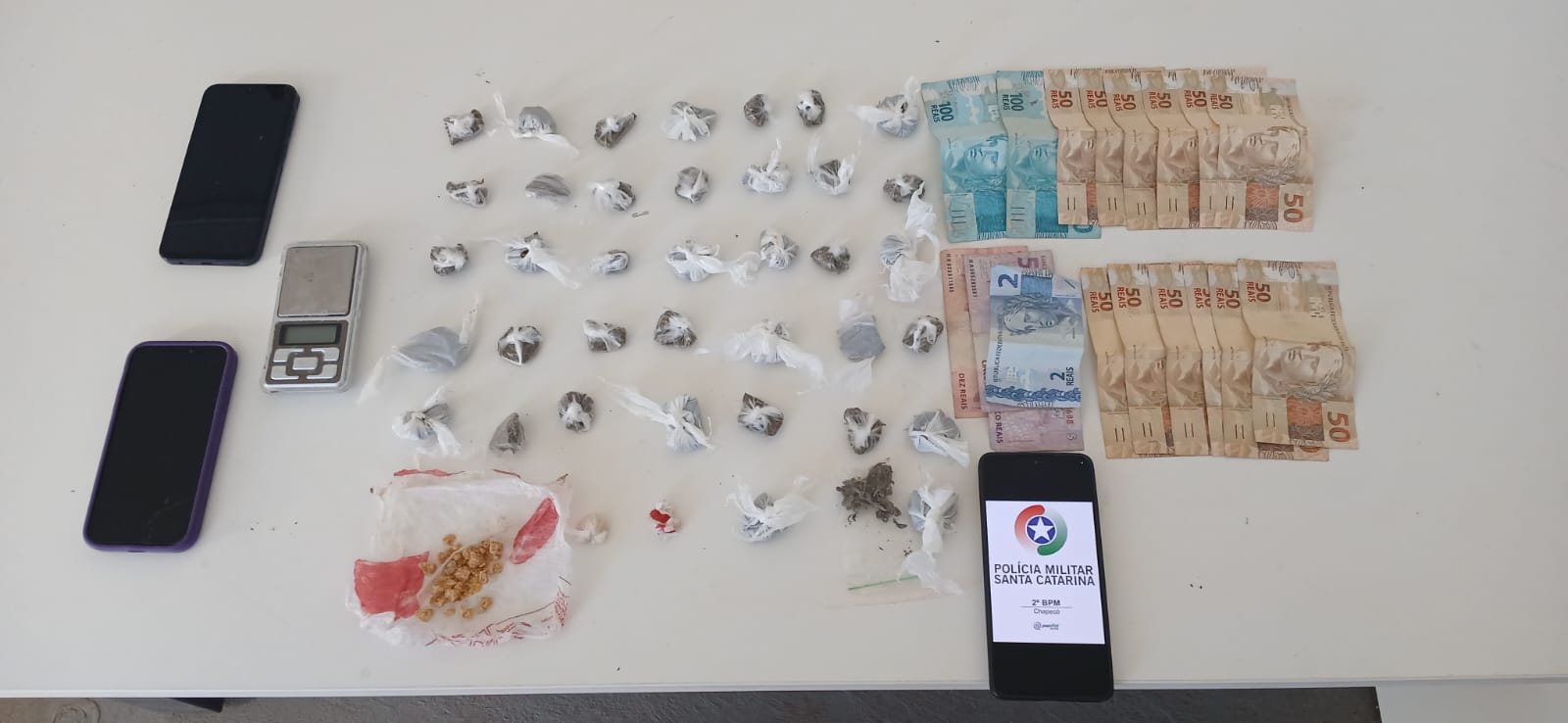 Uma ação da Polícia Militar de Santa Catarina, por meio da guarnição de motopatrulhamento tático (ROCAM), do 2º BPM/Fron de Chapecó, resultou na detenção de dois suspeitos por tráfico de drogas, associação ao tráfico, corrupção de menores e desacato. A ocorrência foi registrada na tarde desta quarta-feira (02), rua Barão do Rio Branco, bairro São Pedro.