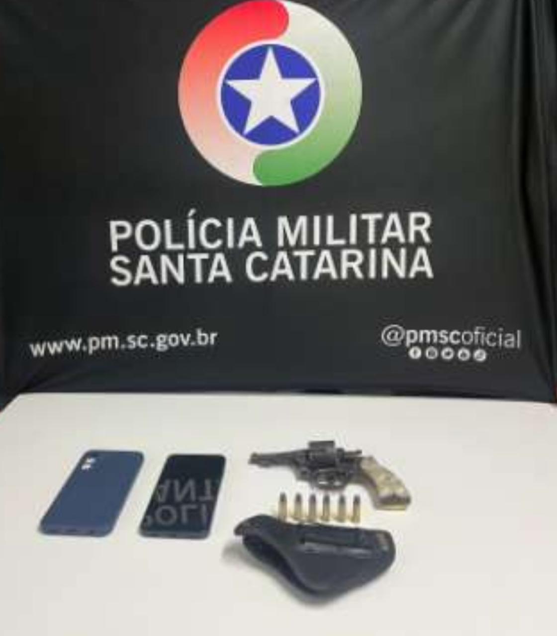 Após receber as informações, a guarnição iniciou diligências pela região e localizou o suspeito ainda armado. Durante a abordagem, os policiais encontraram o revólver na cintura do homem, que não apresentou documentação legal para o porte.