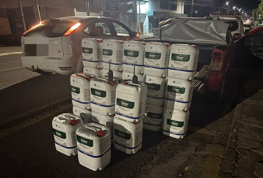 No saveiro, a guarnição encontrou 23 galões de agrotóxico, totalizando 460 litros do herbicida altamente tóxico, o qual tem a comercialização e uso no controlado no território Brasileiro.