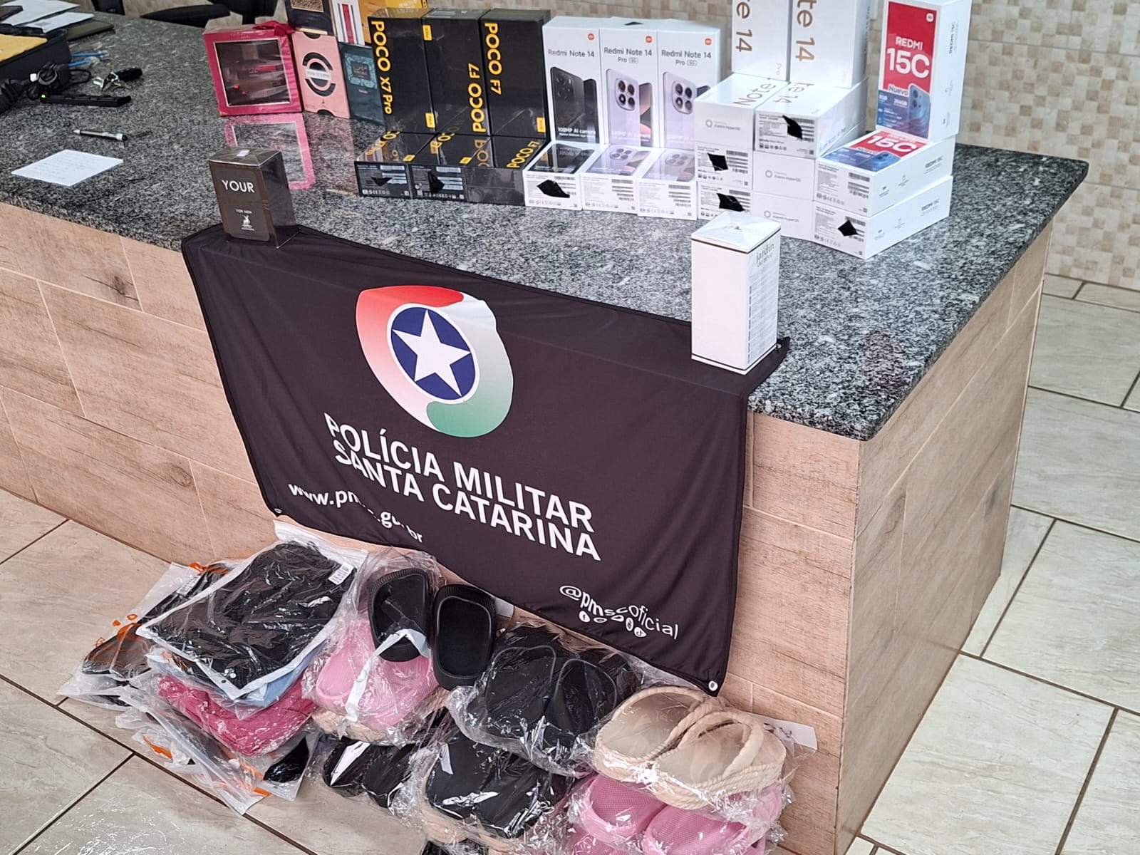 A Polícia Militar Rodoviária de Santa Catarina apreendeu, na tarde deste sábado (10), um veículo e diversas mercadorias de origem estrangeira durante uma ação de combate a crimes transfronteiriços na SC-480, em Bom Jesus, no Oeste catarinense. A ocorrência foi registrada por volta das 16h40, no km 77,150 da rodovia, na área central do município.