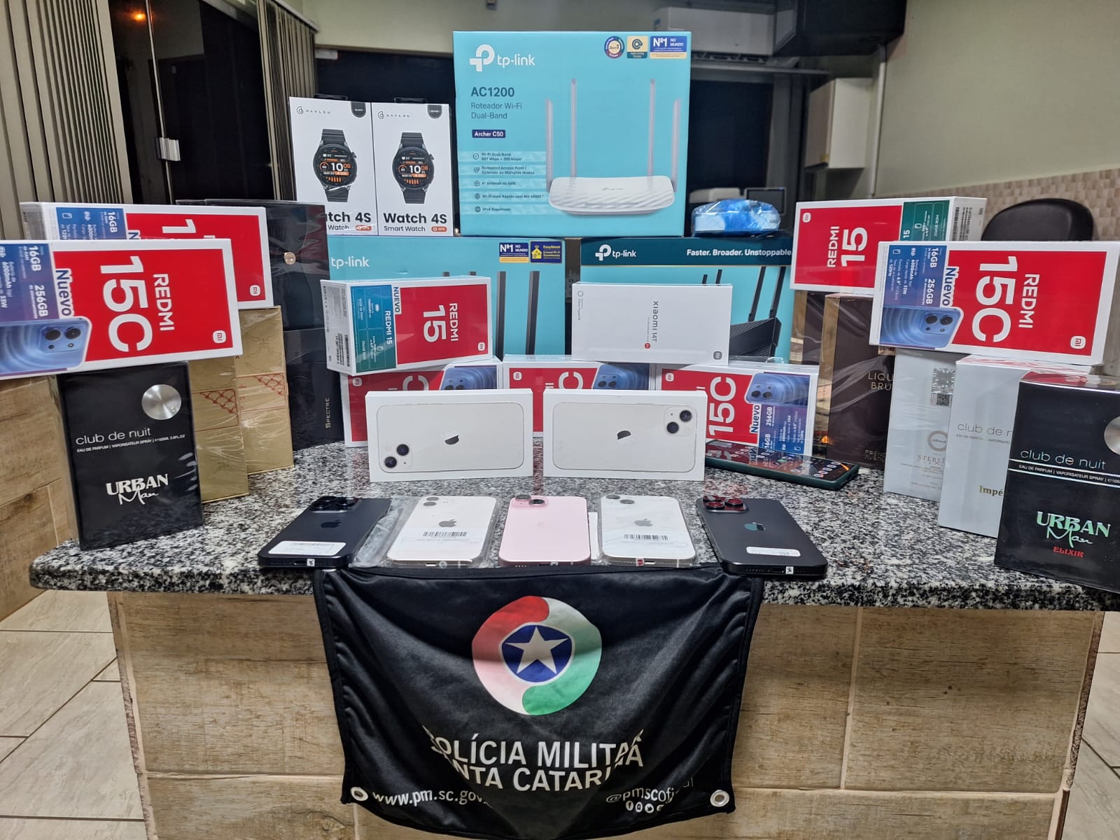 Diante da suspeita, as embalagens foram abertas na presença do motorista, de 31 anos. No interior, foram localizados iPhones novos e recondicionados, perfumes, smartwatches, roteadores e outros eletrônicos. As mercadorias, oriundas do Paraguai e sem comprovação de desembaraço aduaneiro, foram avaliadas em aproximadamente R$ 25.400,00. As caixas estavam identificadas com sacolas de uma loja conhecida localizada no Paraguai e tinham como destino a cidade de Joaçaba-SC.
