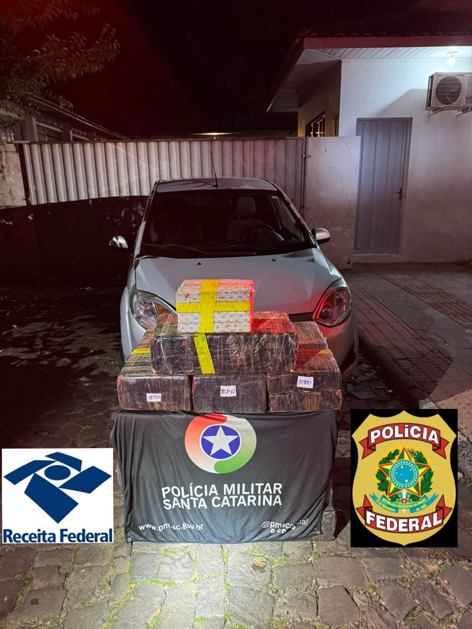 Durante a fiscalização, os policiais abordaram um Ford Fiesta conduzido por um homem de 22 anos, natural de Cascavel (PR). No interior do carro, foram encontrados 322,6 kg de maconha. O veículo tinha registro em Dois Irmãos (RS), mas estava com placas de outro automóvel de mesmas características.