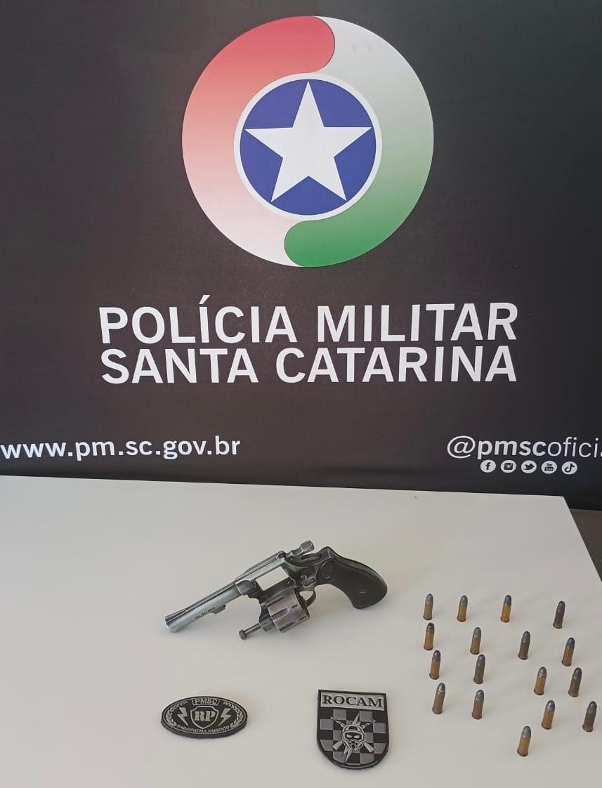 De forma voluntária, o suspeito entregou à guarnição um revólver calibre .32, carregado com seis munições intactas. Durante uma revista no imóvel, os policiais também localizaram mais 11 munições do mesmo calibre, acondicionadas em uma pequena bolsa feminina.
