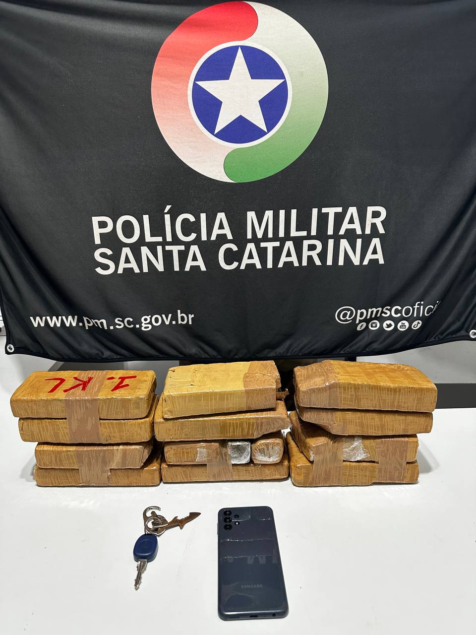 Diante da suspeita, o automóvel foi abordado. O condutor, um jovem de 22 anos, foi revistado, mas nada de ilícito foi encontrado com ele. No entanto, dentro da sacola havia 12 tabletes de maconha, totalizando 5.966 gramas.