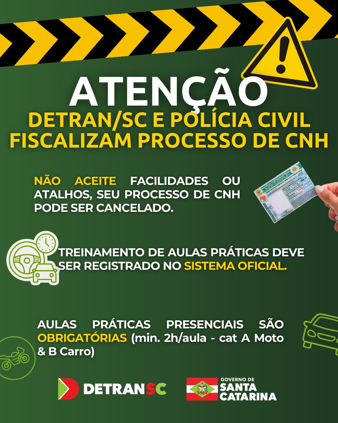 A Polícia Civil de Santa Catarina e o Departamento Estadual de Trânsito de Santa Catarina identificaram uma irregularidade em um processo de obtenção da Carteira Nacional de Habilitação (CNH) no estado. A apuração ocorreu em uma Agência Regional do Detran/SC, no interior catarinense, e reforça a fiscalização sobre instrutores autônomos e o cumprimento das etapas obrigatórias de formação de condutores.