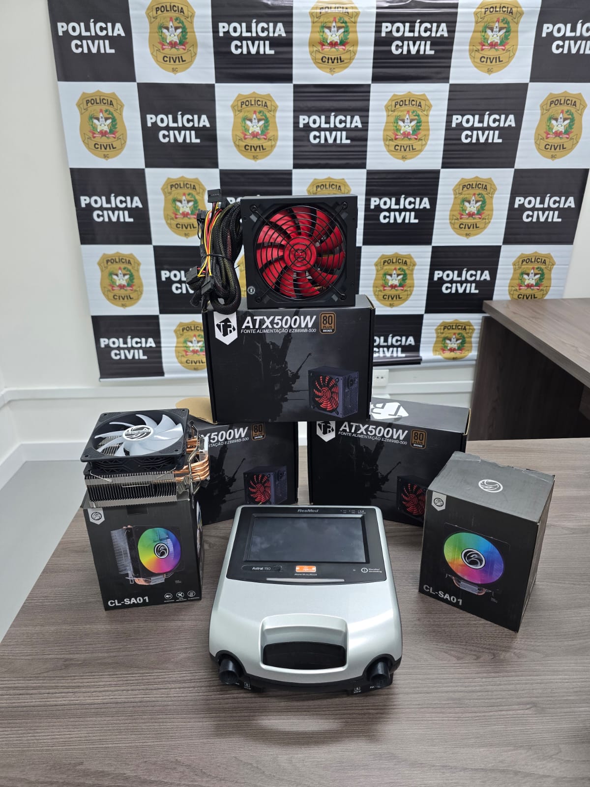 A Polícia Civil, por meio da Delegacia de Repressão a Roubos de Chapecó -DRR/FRON recuperou, na última sexta-feira, dia 20 de fevereiro, um ventilador mecânico pertencente ao hospital da cidade de palmitos, subtraído no mês de janeiro do corrente ano, de um caminhão de transporte, estacionado no município de Chapecó.