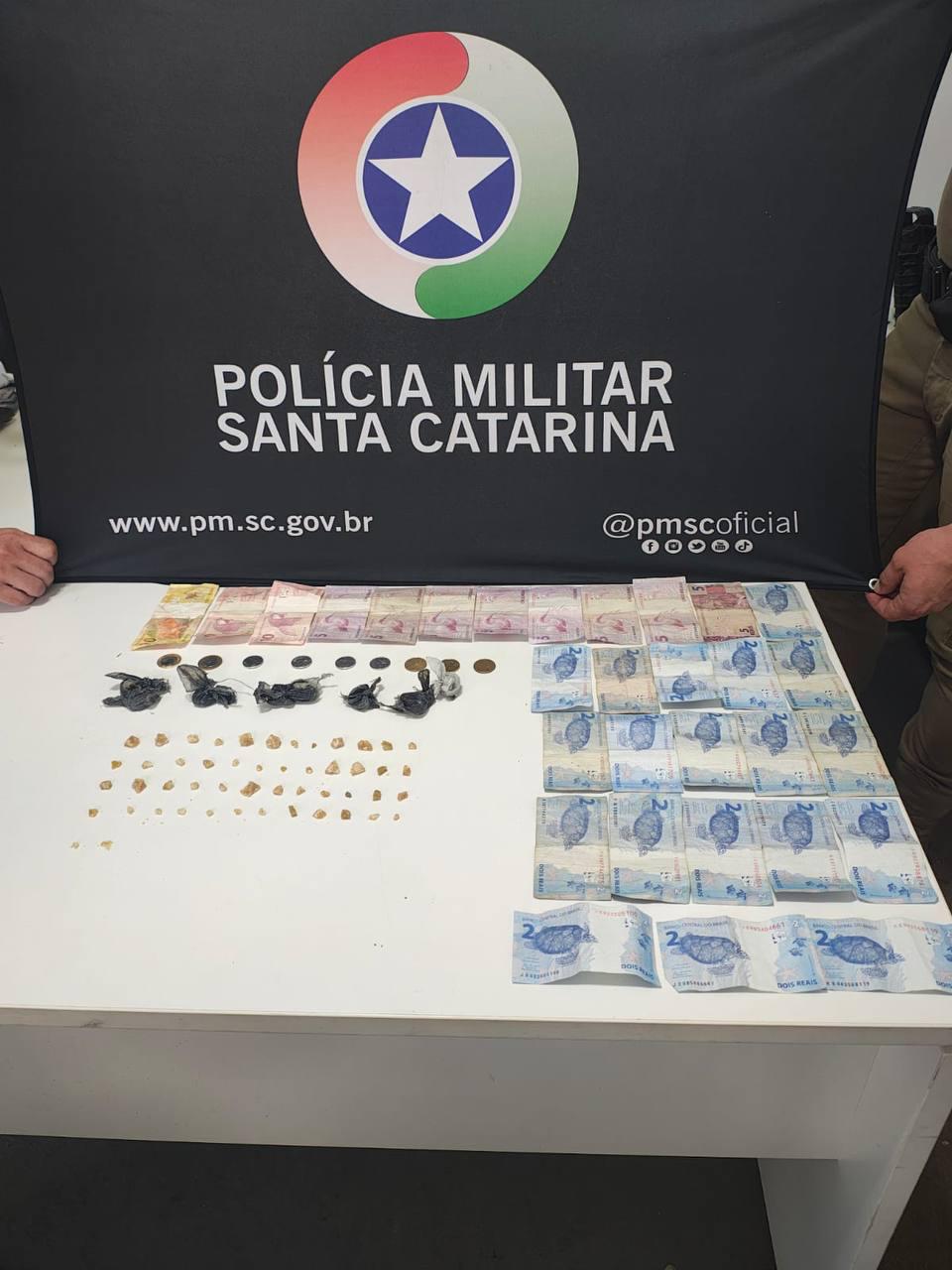 Na busca pessoal foram encontradas porções de substâncias análogas a crack e maconha, além de dinheiro em espécie. O suspeito recebeu voz de prisão e foi conduzido à Central de Plantão Policial, juntamente com o material apreendido, para os procedimentos legais cabíveis.