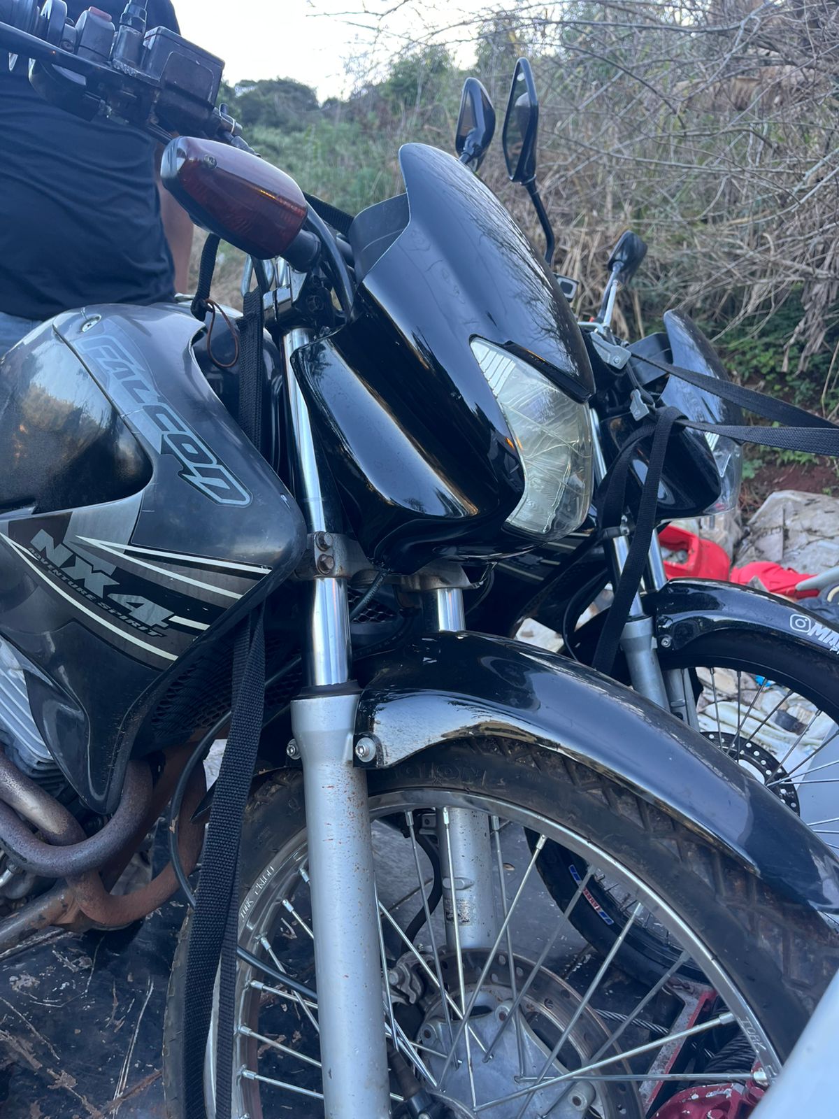 As guarnições chegaram até o local após receberem informações de que os veículos estariam escondidos na propriedade. A residência estava desabitada, mas, ao olharem pela janela da garagem, os policiais visualizaram as duas motocicletas Honda NX-4 Falcon furtadas.