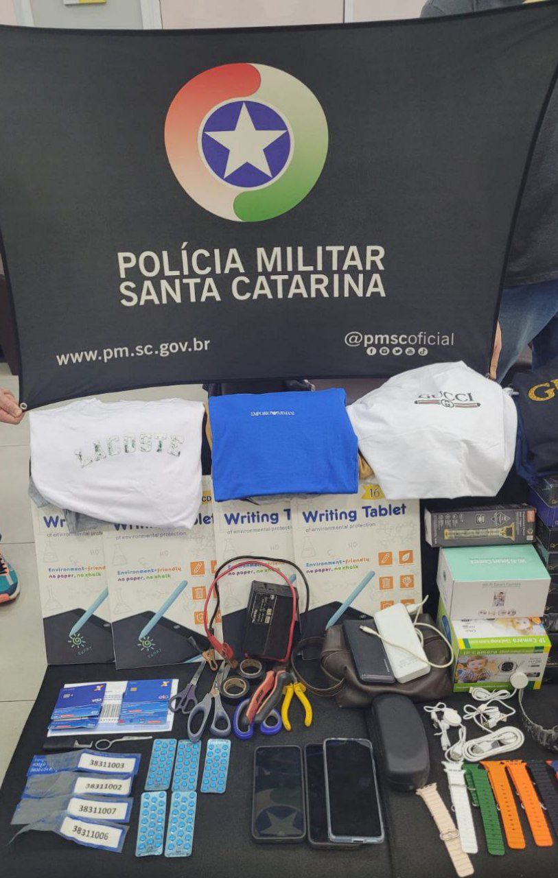 Outros itens, possivelmente de contrabando, também foram apreendidos. Diante dos fatos, os suspeitos e o veículo foram encaminhados à Polícia Federal de Chapecó para os procedimentos cabíveis.