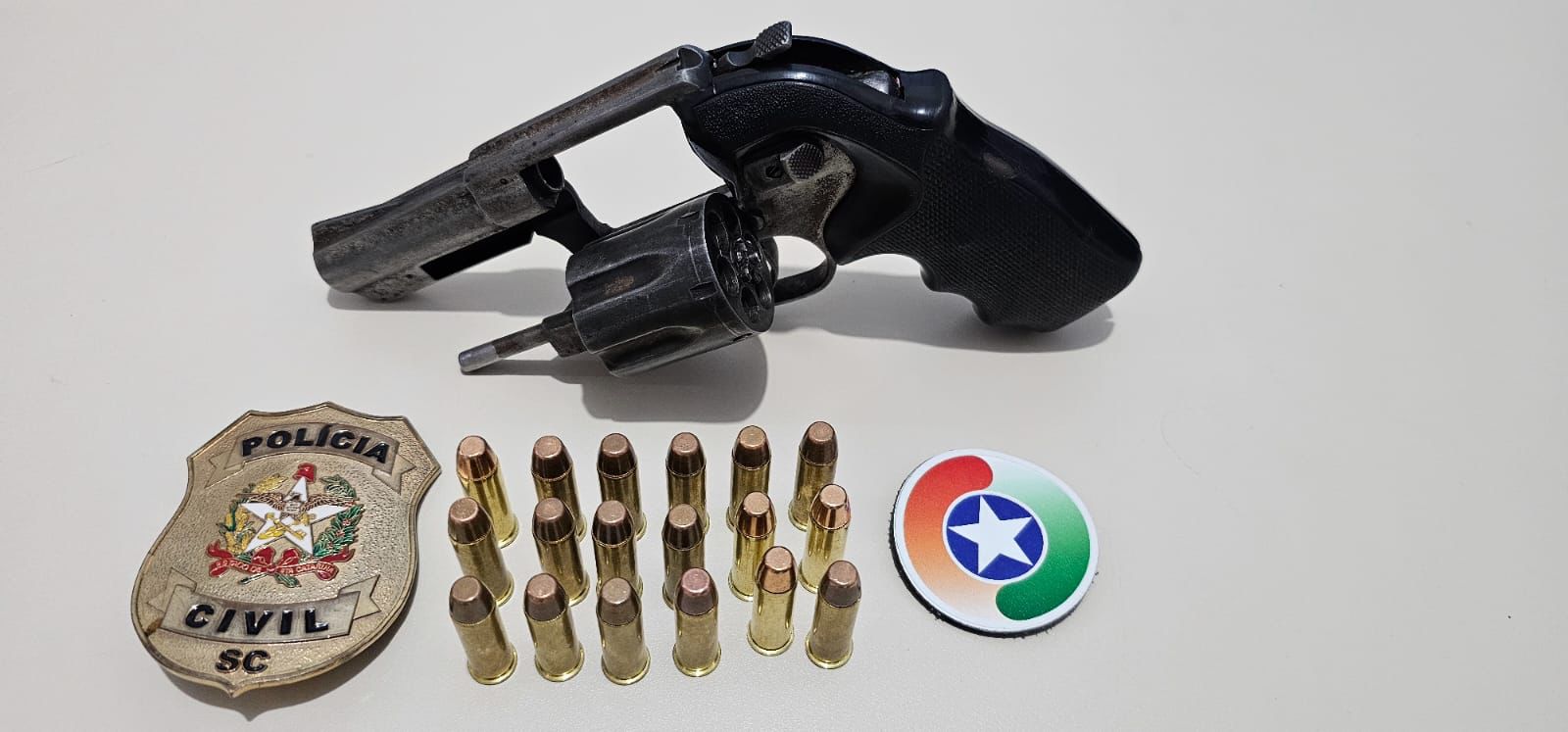 Uma operação integrada entre a Polícia Civil e a Polícia Militar de Santa Catarina resultou, na tarde desta terça-feira (8), na prisão em flagrante de um suspeito de 19 anos no município de Caxambu do Sul, no Oeste do estado. Ele foi detido por posse ilegal de arma de fogo com numeração raspada e 18 munições.