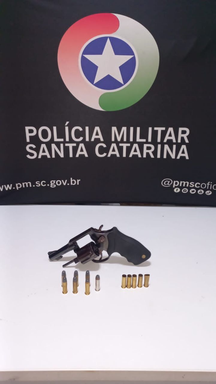 No local, os policiais abordaram um suspeito envolvido na discussão. Durante a averiguação em um veículo, foi localizada uma munição intacta de calibre 38 e um estojo já deflagrado. Em seguida, na residência onde o suspeito se encontrava, a equipe encontrou um revólver calibre 38 escondido no sofá, com seis munições intactas no tambor.