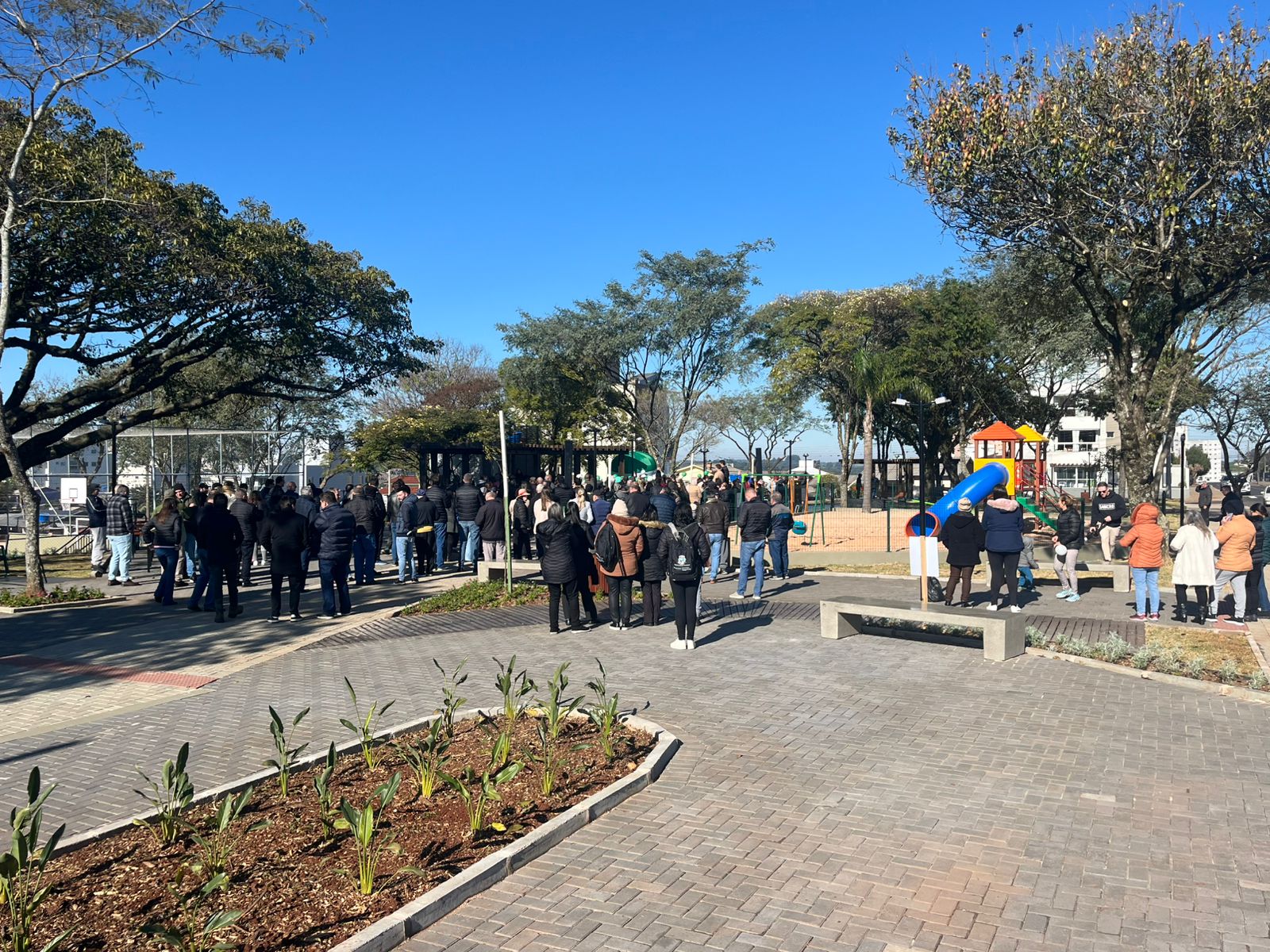 A comunidade do bairro São Cristóvão, em Chapecó, ganhou nesta quinta-feira (3) um espaço totalmente renovado para lazer e convivência. A Praça Paulo Marques foi reinaugurada pela Prefeitura após receber um investimento de R$ 2,9 milhões, que possibilitou a construção de uma quadra poliesportiva moderna, playground, áreas para piqueniques, jogos de tabuleiro, pergolados, academia ao ar livre, rampas de acessibilidade e novos passeios em paver.