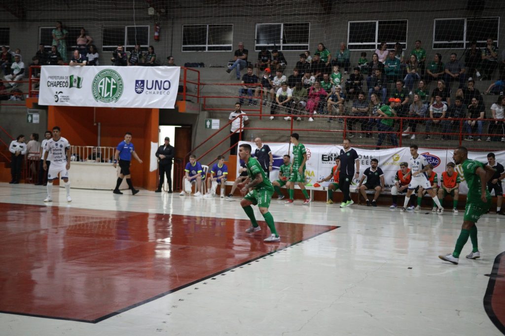 Com o Ginásio Plínio Arlindo De Nes lotado, a Prefeitura de Chapecó/Chapecoense/Unochapecó empatou por 2 a 2 com o Tubarão, equipe da Liga Nacional. A partida na noite deste sábado (5), em Chapecó, foi a primeira do Verdão das Quadras no Estadual Série Ouro da Federação Catarinense de Futsal após oito anos.