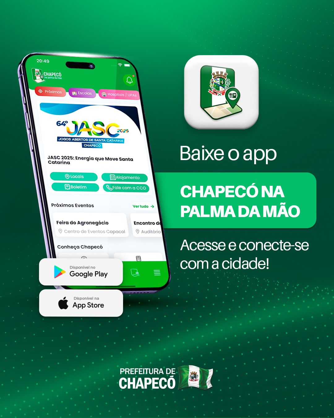 Para obter o aplicativo basta pesquisar Chapecó na Palma da Mão e baixar no celular.