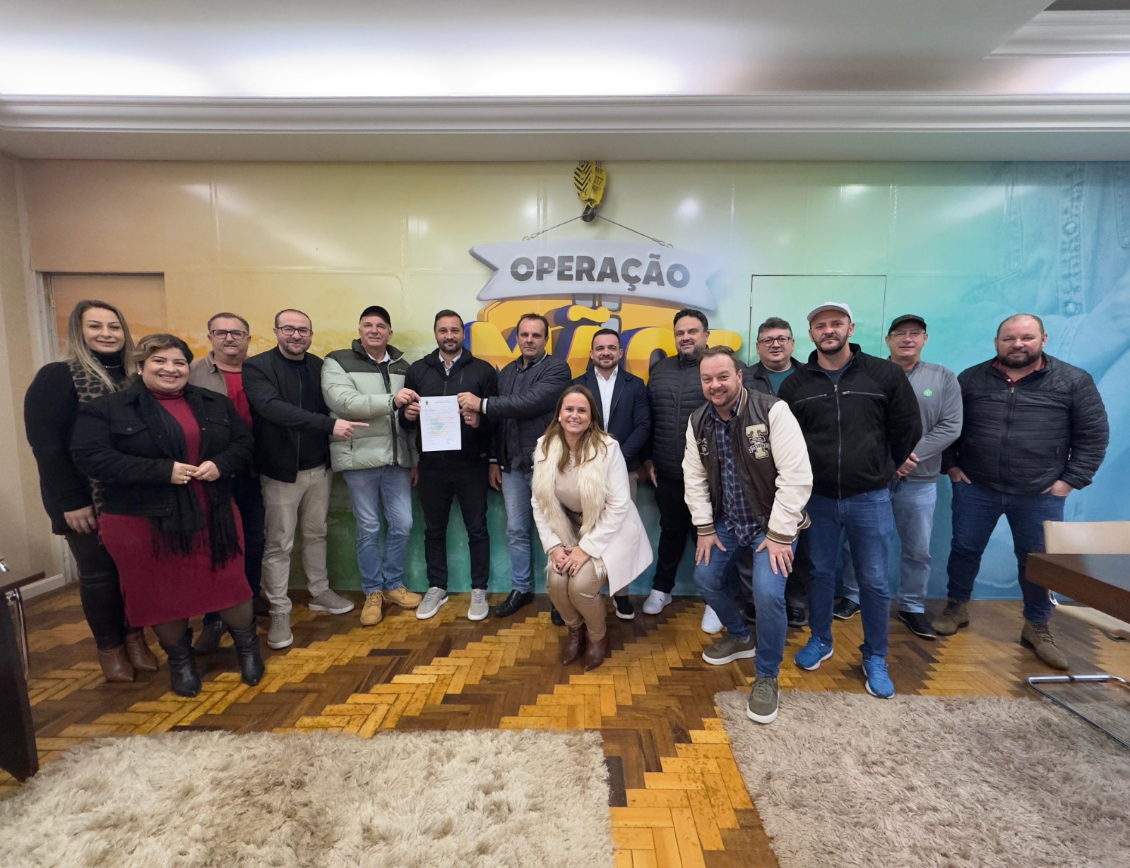 A entrega simbólica do ofício e do valor aconteceu no gabinete do prefeito Chico Folle, com a presença do presidente da Câmara, Gelci Guerino Della Corte, vereadores, do vice-prefeito Ideraldo Sorgato e secretários municipais
