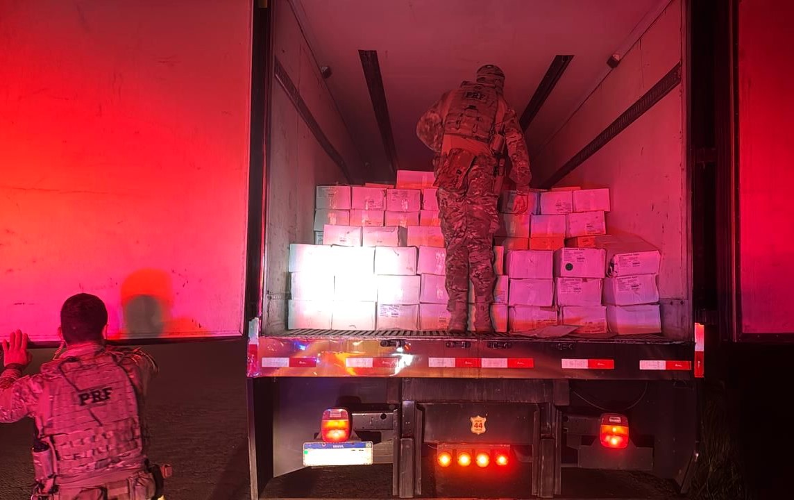 Na madrugada desta quinta-feira (09), policiais rodoviários federais apreenderam cerca de 8 toneladas de camarão contrabandeado da Argentina durante fiscalização a um caminhão-baú na BR-153, em Água Doce. A importação do produto é proibida pelos órgãos sanitários brasileiros.