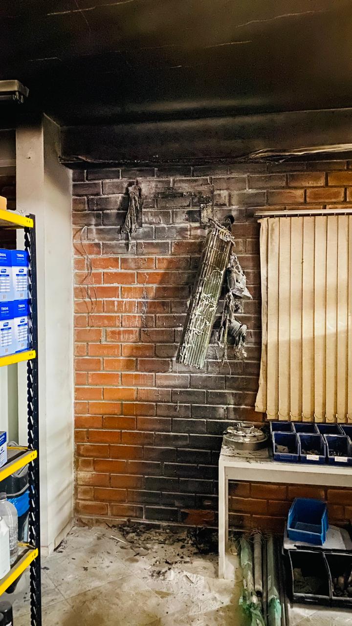 Quando a equipe chegou ao local, o fogo já havia sido controlado por um dos proprietários da empresa, um homem de 59 anos que ainda estava no estabelecimento. O incêndio começou em um aparelho de ar-condicionado, que ficou completamente destruído.