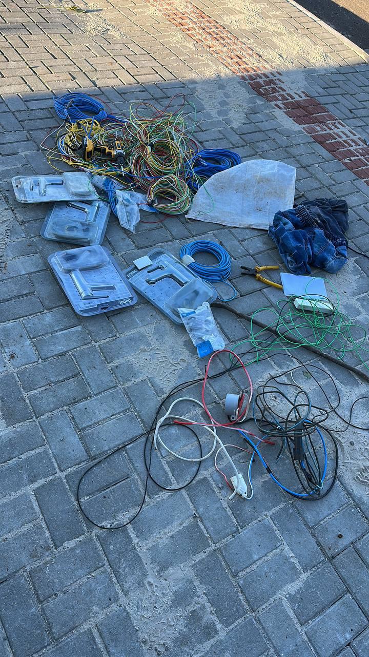 Durante a fuga, os policiais localizaram sacos com fios elétricos abandonados, que foram recuperados. Entre os itens furtados estavam grande quantidade de fios de energia elétrica, quatro torneiras e uma furadeira elétrica.