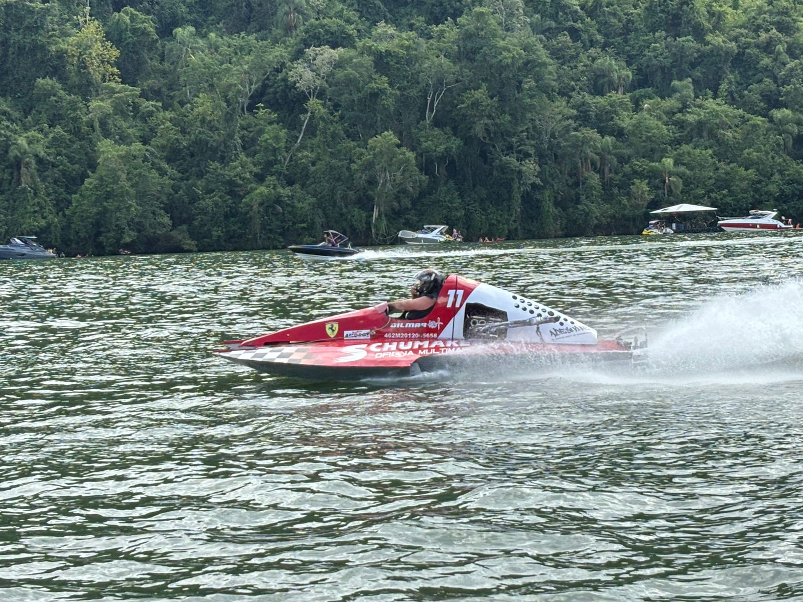 Cerca de oito mil pessoas assistiram pilotos de cinco países disputando provas de Motonáutica, no sábado (01) e no domingo (02), no porto Goio-Ên, em Chapecó, segundo cálculo da comissão organizadora. As águas do Lago formado pela barragem Foz do Chapecó, no Rio Uruguai, tiveram disputas entre pilotos de cinco países: Argentina, Bélgica, Brasil, México e Porto Rico.