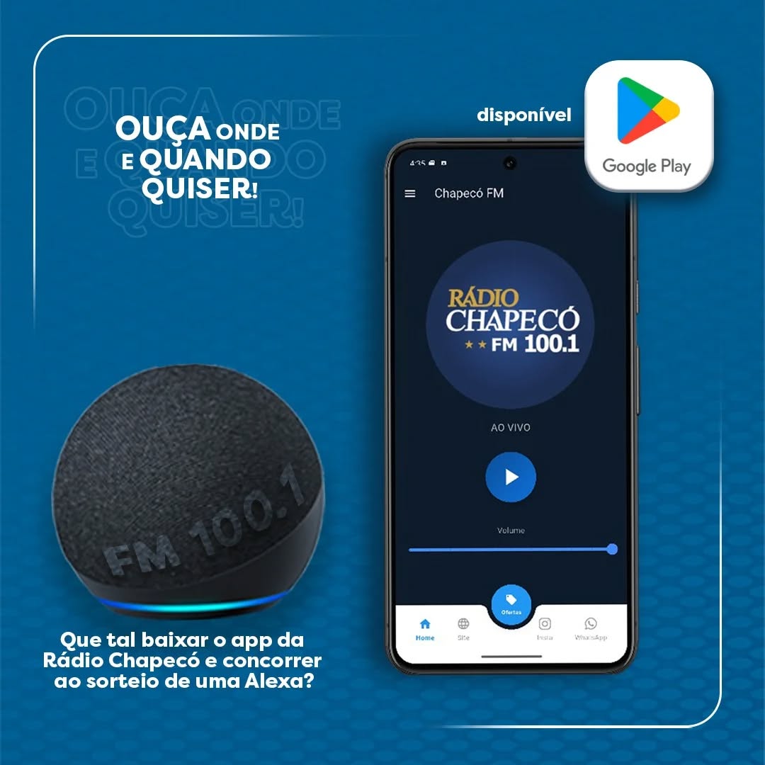 Como forma de incentivar os ouvintes a baixarem e conhecerem o aplicativo, a Rádio Chapecó está promovendo uma campanha especial. Todos os usuários que fizerem o download do app e preencherem um breve cadastro — que inclui algumas perguntas rápidas — estarão automaticamente concorrendo a uma assistente virtual Alexa.