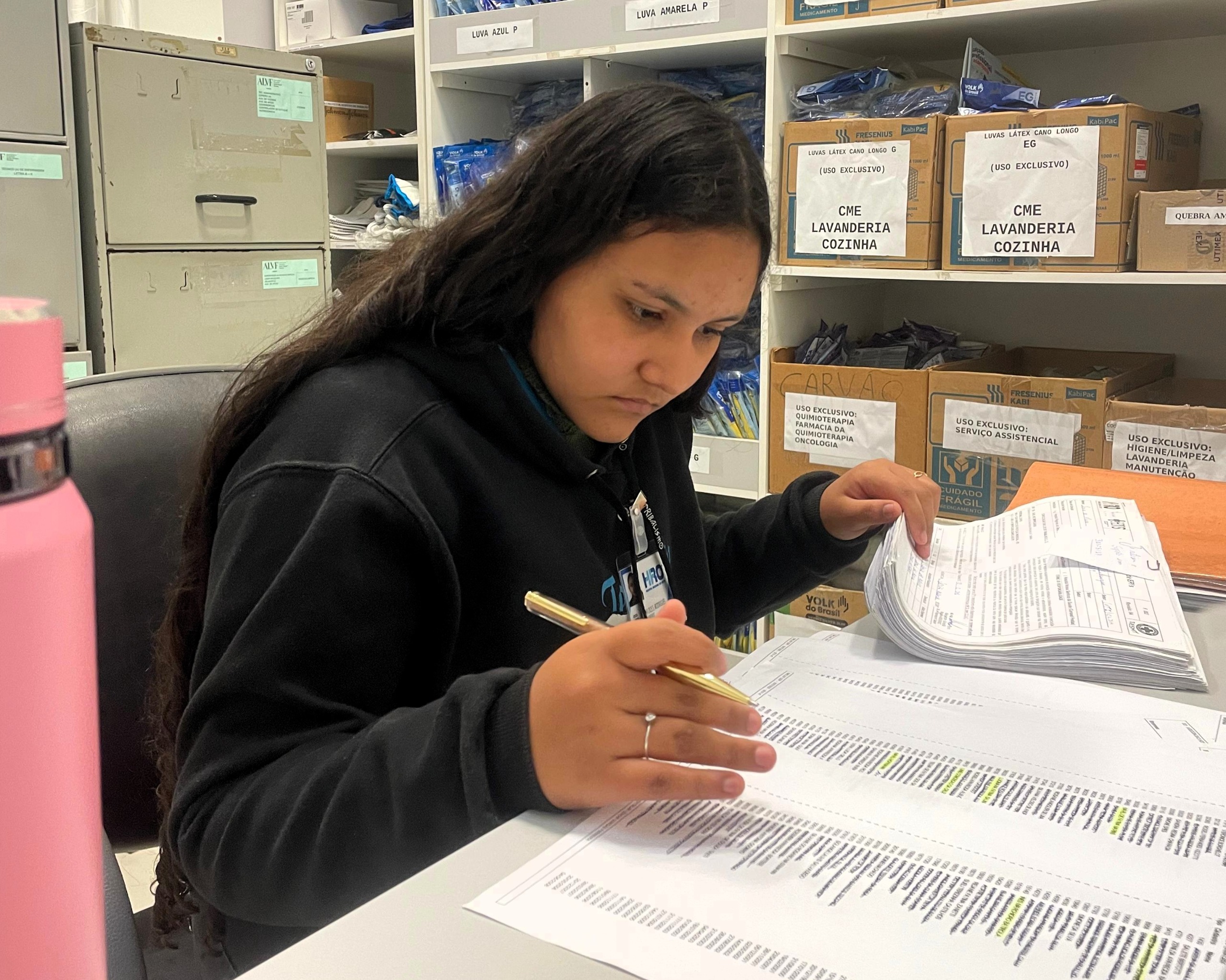 No último mês, a jovem Vitória dos Santos Rodrigues, de 18 anos, deu um importante passo para sua vida profissional: iniciou seu primeiro emprego, como jovem aprendiz no Hospital Regional do Oeste (HRO)