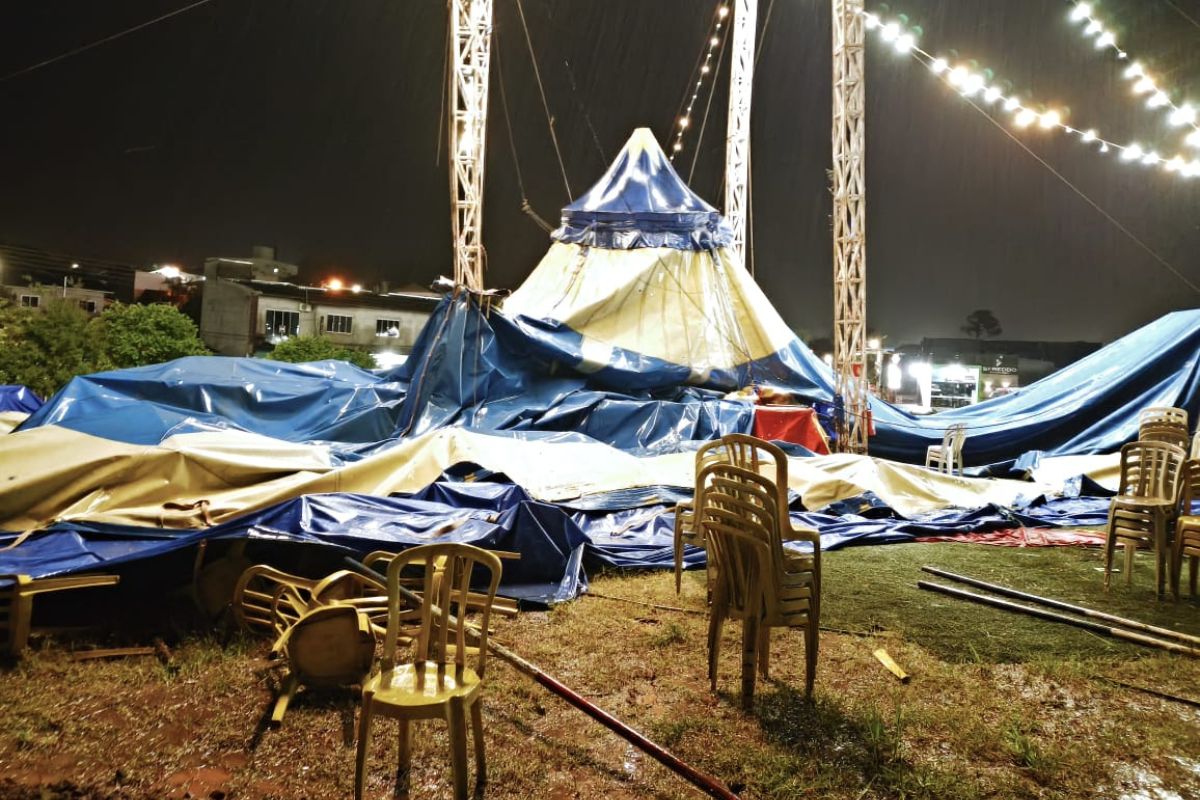 A noite de domingo (16) foi marcada por fortes ventos e chuvas que causaram danos em várias áreas de Chapecó. Entre as ocorrências mais notáveis, destaca-se o desabamento da estrutura de um circo montado na Avenida Nereu Ramos, que não resistiu à força dos ventos.