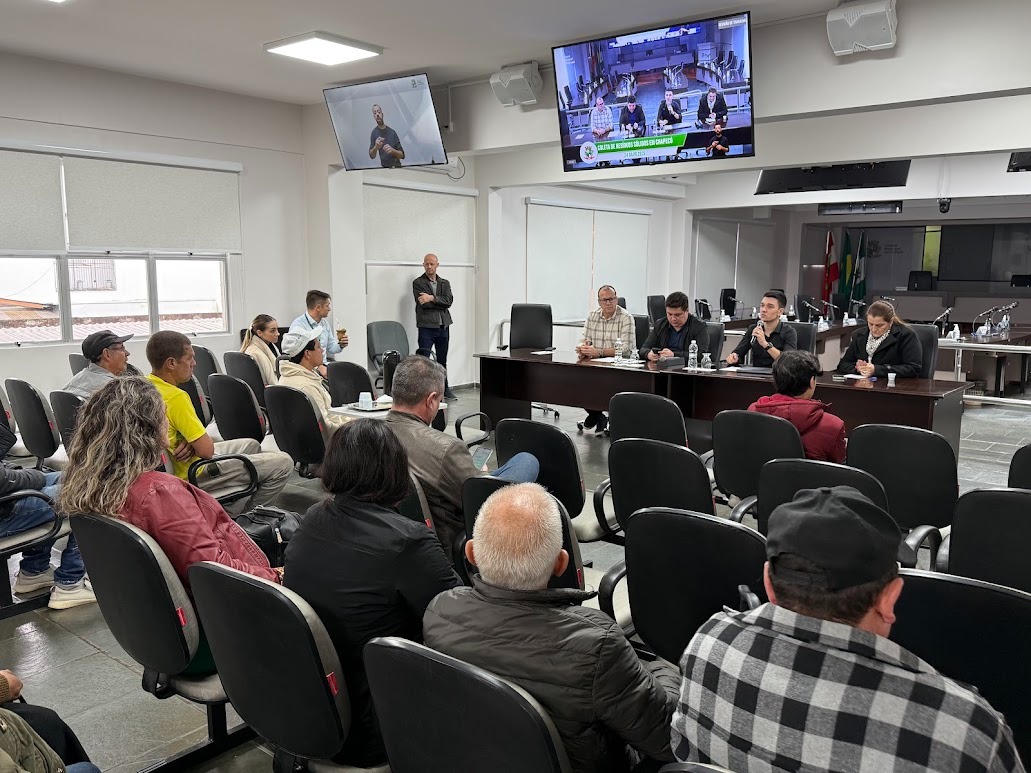 A coleta de resíduos sólidos em Chapecó, especialmente em condomínios, foi tema de uma reunião de trabalho realizada na manhã desta quinta-feira (24) no Plenário Rivadávia Scheffer, na Câmara de Vereadores. A atividade foi proposta e conduzida pelo vereador Wilson Junior Cidrão (Republicanos), com o objetivo de buscar soluções conjuntas para um serviço mais eficiente e inclusivo.