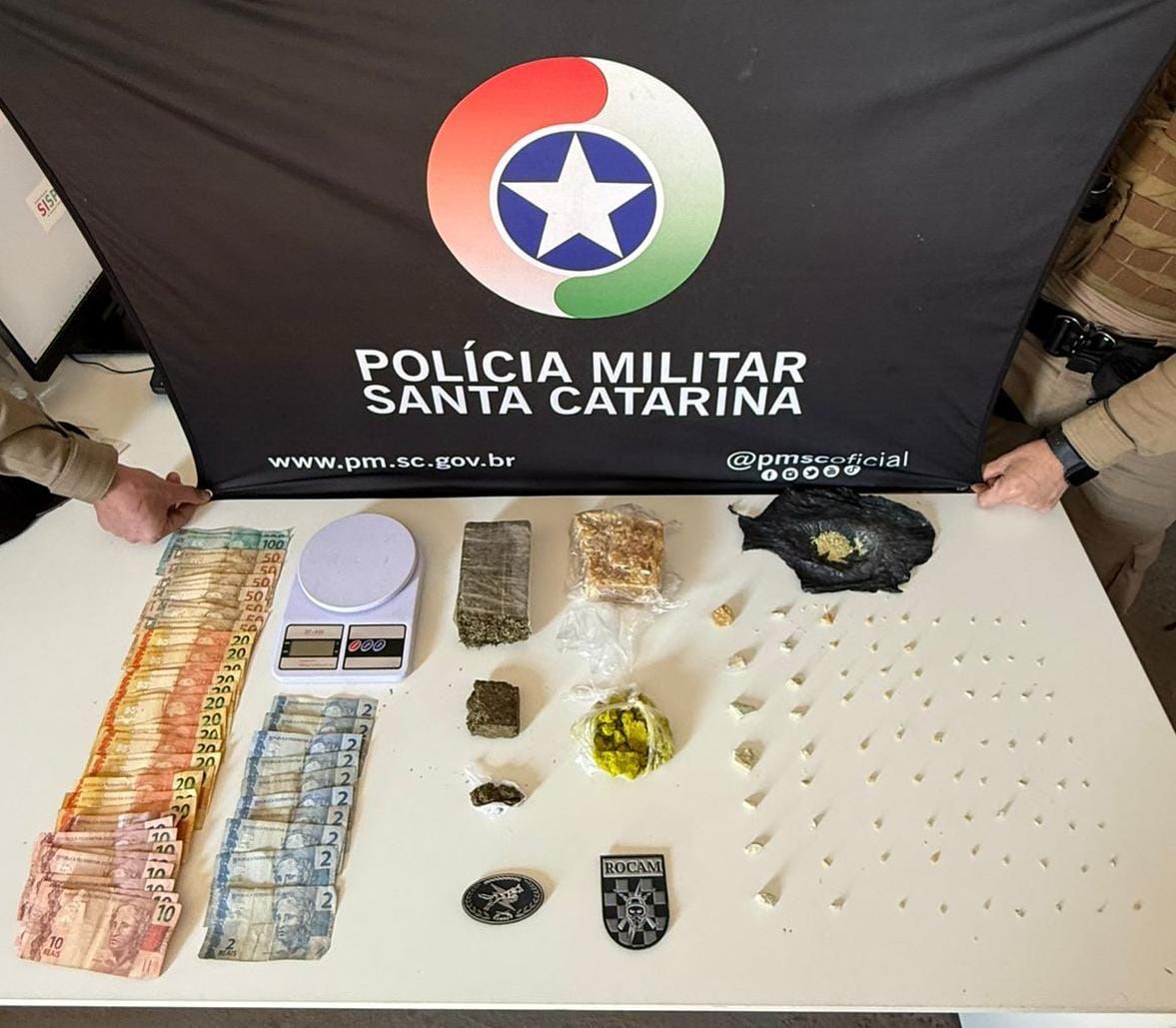 Uma ação da guarnição do MotoPatrulhamento Tático (ROCAM) do 2 BPM/Fron de Chapecó, resultou na apreensão de mais de 1,1 quilo de drogas e na prisão de um homem de 23 anos na manhã desta quinta-feira (14), no bairro Efapi.