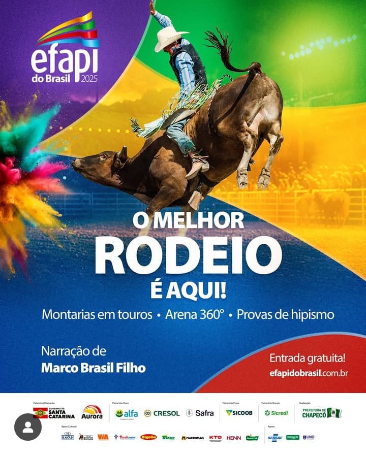 Tradicional símbolo da força do campo e da cultura, o Rodeio da Efapi do Brasil promete ser um dos pontos altos da programação, reunindo competidores renomados e atrações que unem adrenalina, tradição e espetáculo. Com R$30 mil em premiação, o evento vai reconhecer os cinco melhores colocados, em disputas que prometem levantar o público na arena. O acesso à arena de rodeios é gratuito todos os dias para acompanhar os 40 competidores – masculinos e femininos – , divididos nas provas de montaria e tambores.