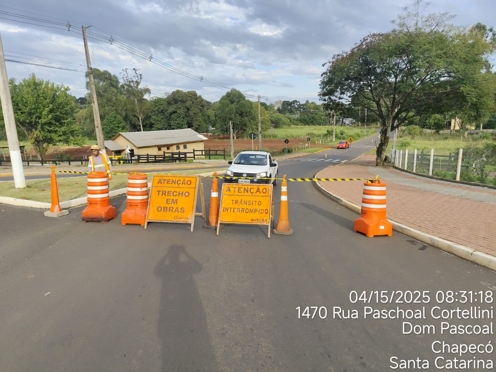 A Prefeitura de Chapecó informa que a rua Paschoal Cortellini será fechada nesta semana, a partir de terça-feira, das 7h30 às 18h30, entre as avenidas Irineu Bornhausen e Getúlio Vargas. O motivo é para fresagem e asfaltamento.