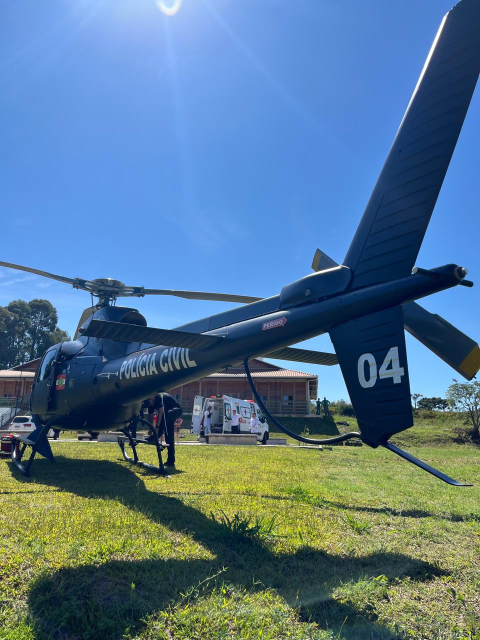 Na manhã desta quarta-feira (11), a aeronave da Polícia Civil foi acionada para realizar uma transferência aeromédica do município de Abelardo Luz ao Hospital Regional do Oeste (HRO), em Chapecó. A operação contou com a atuação integrada dos policiais do Serviço Aeropolicial de Fronteira (SAER-Fron) e dos profissionais do SAMU/Aeromédico.