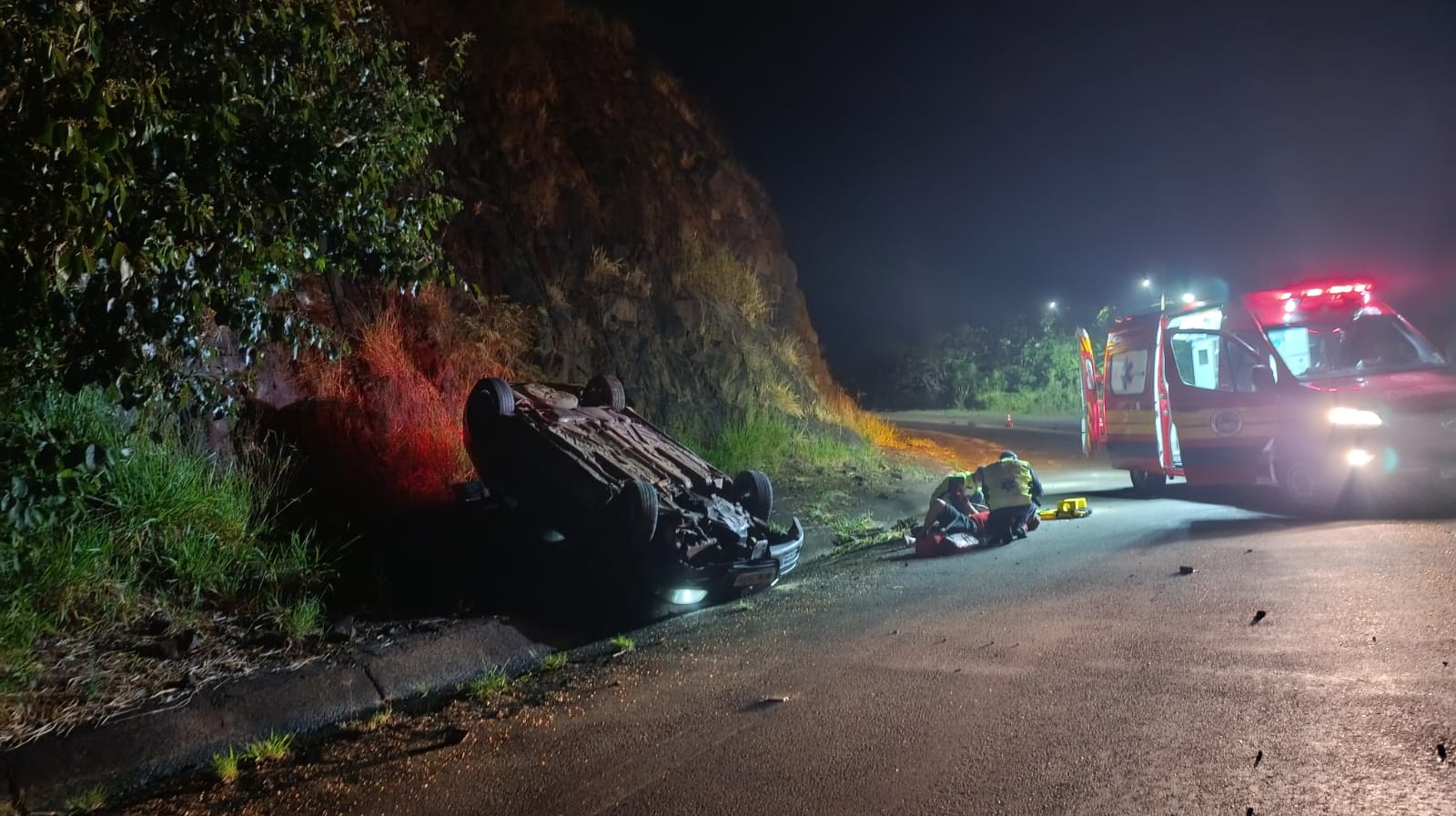 Por volta das 23h40 do último sábado (07), a equipe do Corpo de Bombeiros de Itá atendeu a saída de pista seguida de capotamento de um veículo de passeio.