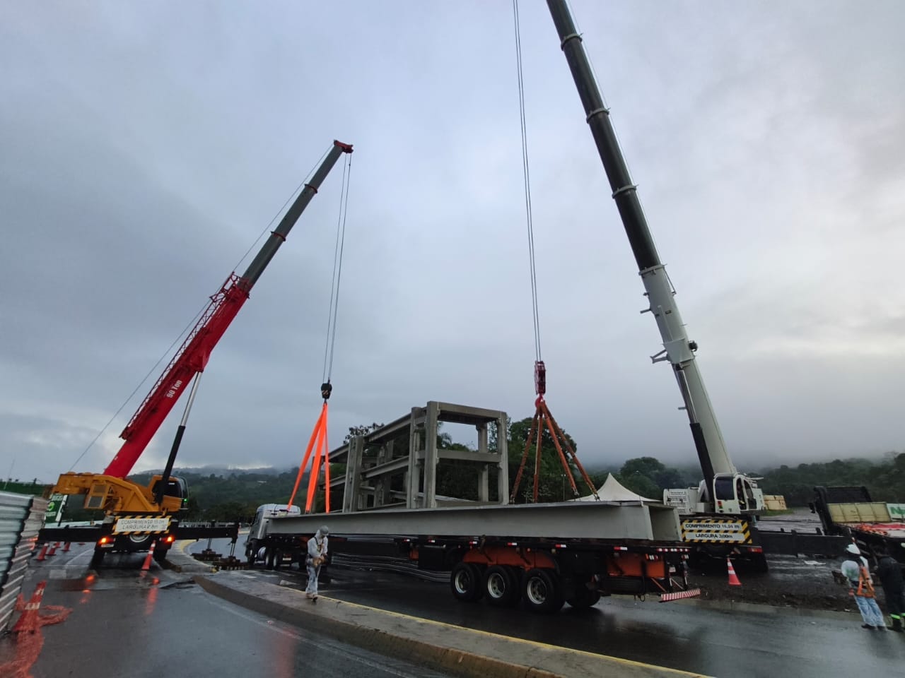 O trânsito na SC-283, entre Chapecó e Arvoredo, foi liberado ainda na manhã deste domingo (26), após a realização do içamento de peças para a construção de uma passarela no km 79 da rodovia.