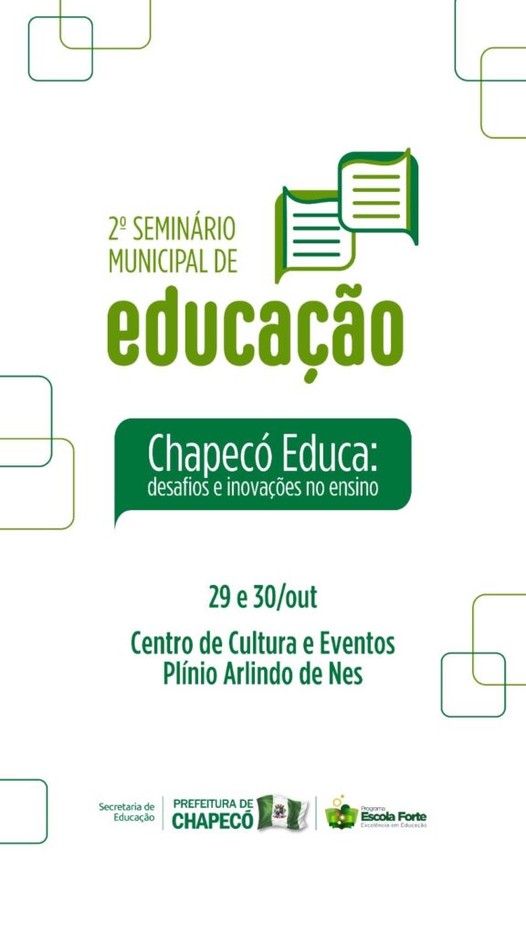 O 2º Seminário Municipal de Educação, com o tema “Chapecó Educa: desafios e inovações no ensino”, acontecerá na próxima semana, nos dias 29 e 30 de outubro, no Centro de Cultura e Eventos Plínio Arlindo de Nes. Cerca de 4 mil pessoas são esperadas para o evento.