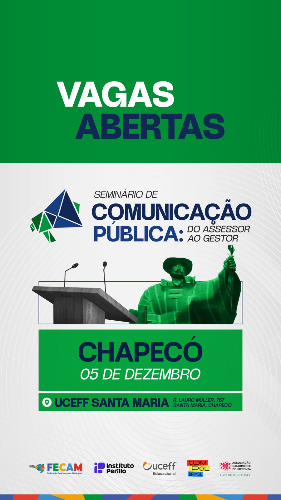 A Federação de Consórcios, Associações e Municípios de Santa Catarina (FECAM) realiza em 5 de dezembro, em Chapecó, a edição Oeste do Seminário de Comunicação Pública – Do Assessor ao Gestor, uma iniciativa que vai mobilizar prefeituras de todo o estado em torno de um mesmo propósito: melhorar a forma como as gestões municipais comunicam suas ações e se conectam com os cidadãos.