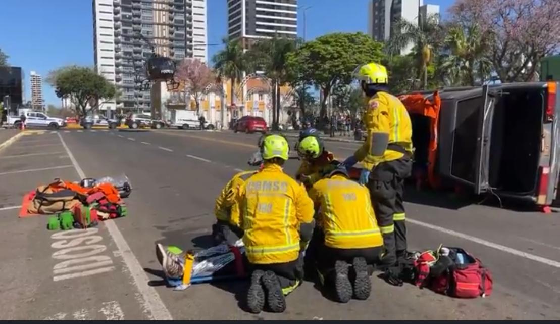 Na manhã desta quinta-feira (25), em Chapecó, um simulado de acidente de trânsito foi realizado em frente à Praça Coronel Bertaso, reunindo diversas forças de segurança e socorro da cidade. A ação marcou as atividades da Semana Nacional do Trânsito, com o objetivo de conscientizar a população sobre a importância da segurança viária.