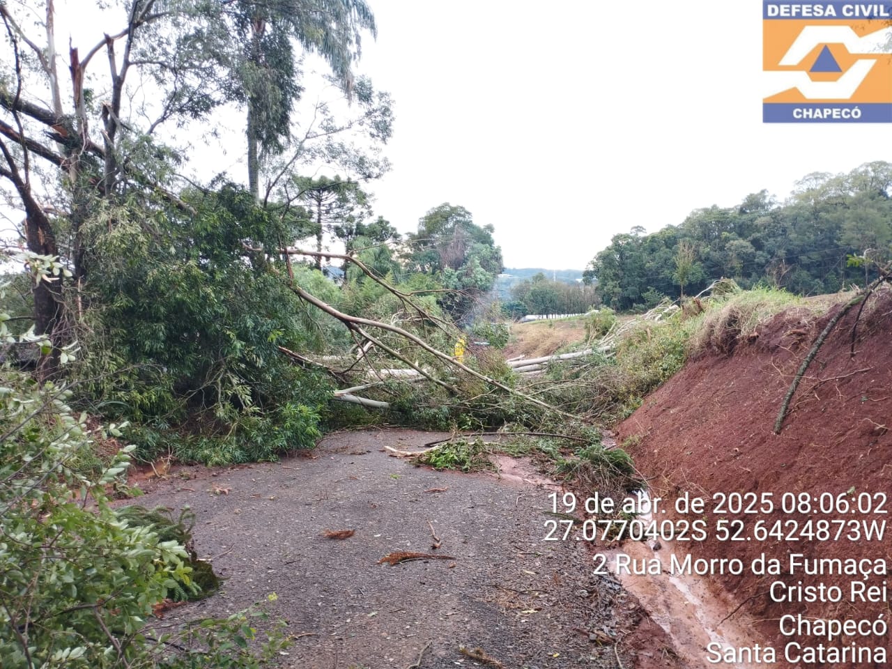 Um tornado atingiu Chapecó, no Oeste de Santa Catarina, na manhã de sábado (19), provocando ventos de até 90 km/h e causando diversos danos, principalmente na região Norte da cidade. O fenômeno meteorológico afetou pelo menos 79 residências, com registros de destelhamentos, árvores arrancadas pela raiz e prejuízos significativos na zona rural.