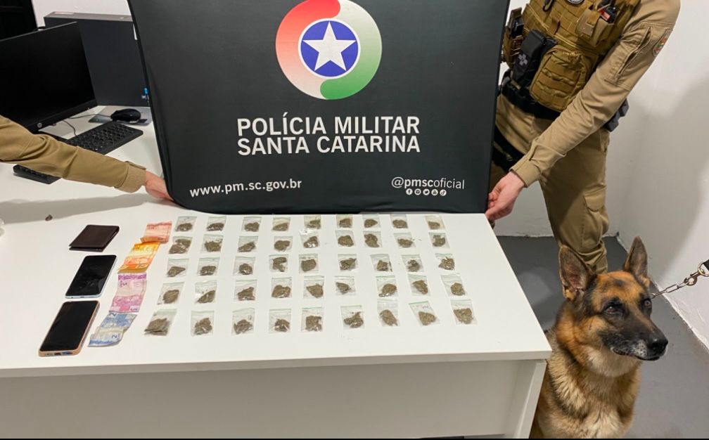 Durante a abordagem, os policiais encontraram com os suspeitos um total de 15 porções de maconha fracionadas para venda, 12 com um deles e três com o outro. Na busca sob a lona, foram localizados mais 8 porções da droga. Posteriormente, com apoio do canil, o cão farejador encontrou um pacote plástico contendo outras 23 porções, totalizando 46 unidades da substância ilícita.