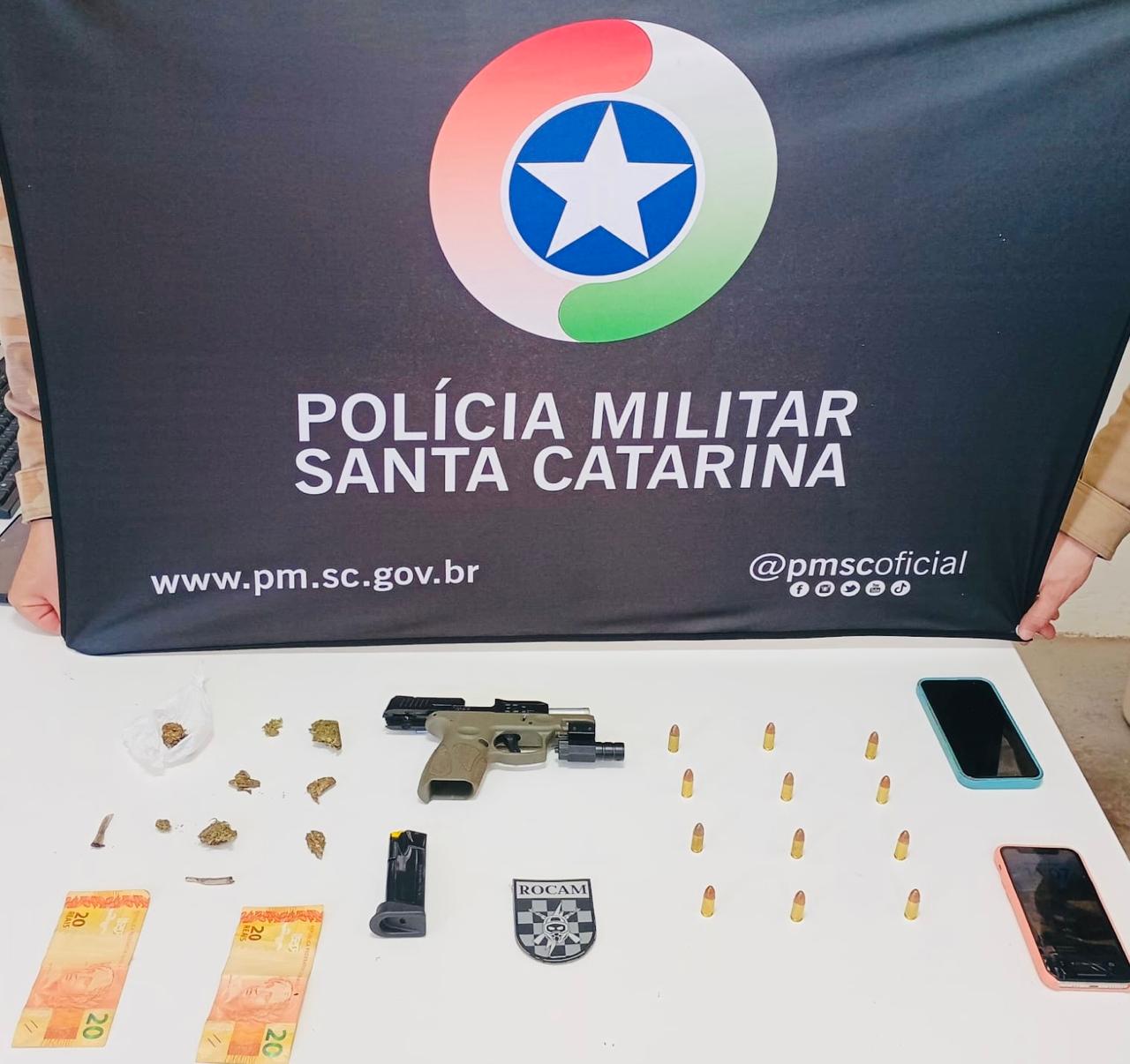 Polícia apreende pistola com numeração raspada, munições e maconha em Chapecó