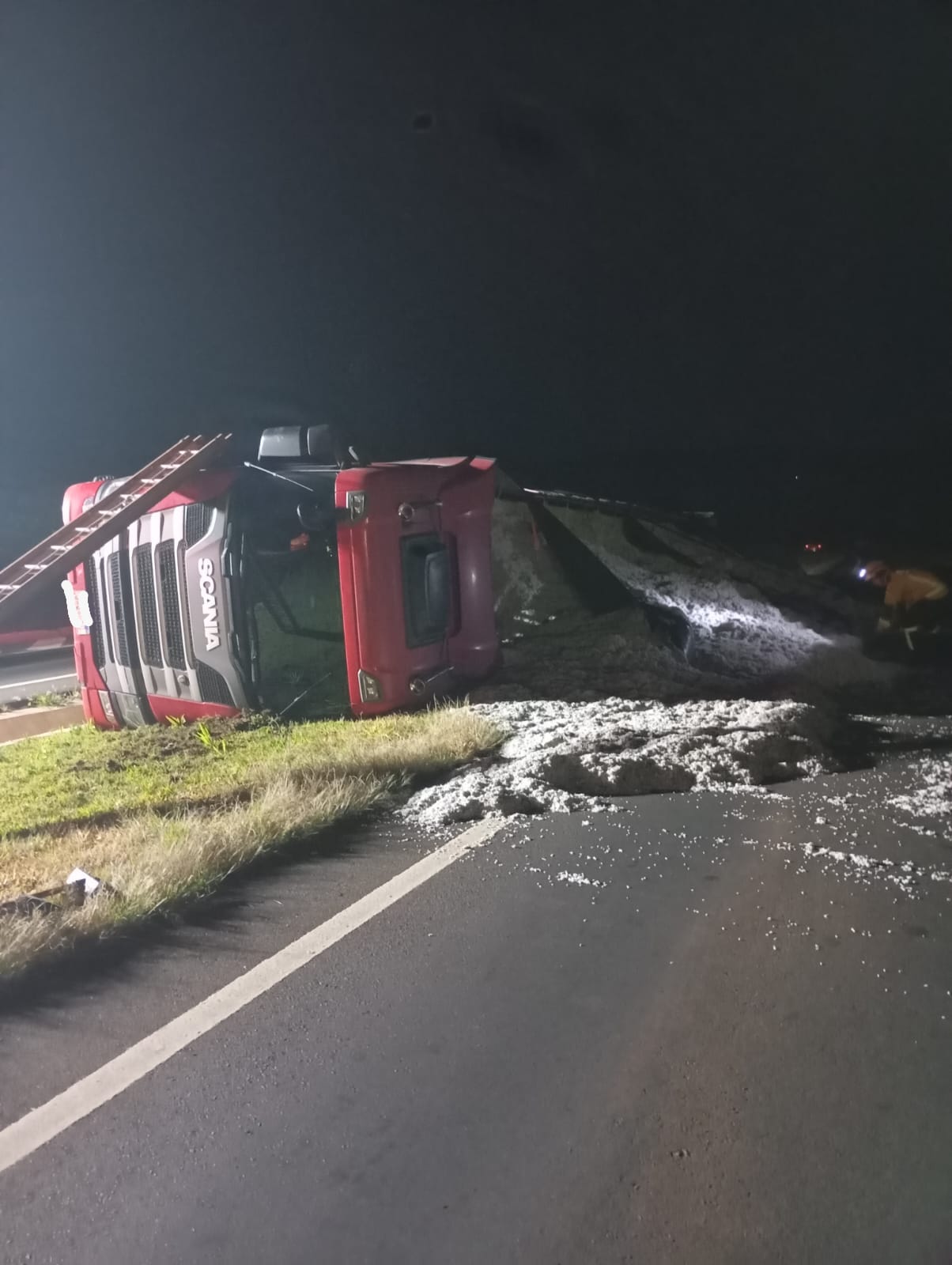 Condutor sofreu escoriações e foi levado ao hospital após atendimento dos bombeiros Um caminhão tombou após sair da pista na…