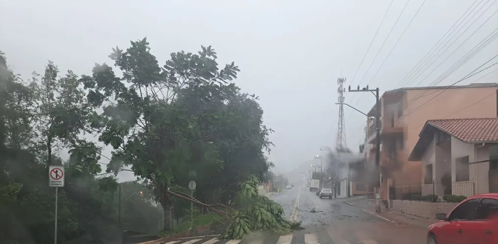 Por volta das 13h30 desta sexta-feira, 9, chuva e fortes ventos causaram destelhamentos e quedas de árvores em Itapiranga.