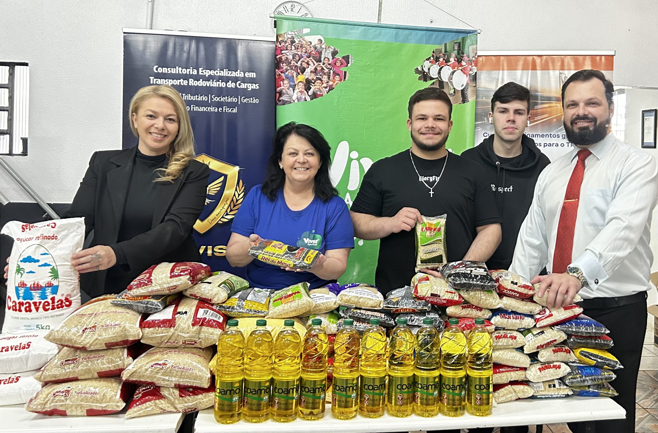 Alimentos arrecadados no Unitran Summit Brasil, evento que ocorreu em Chapecó no dia 20 de agosto passado, foram doados ao Programa Viver Ações Sociais. A entrega foi feita à diretora da instituição, Elisiane Sanches, na sede do Viver, por Ariel Vanquisher e Keily Machado Vanquisher, representantes da Unitran e Sitran.