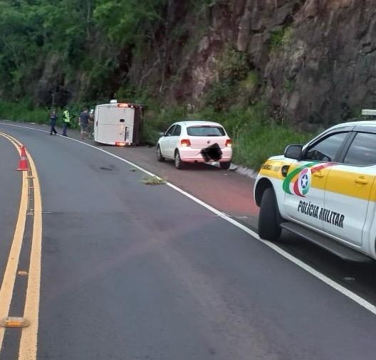 Segundo a PMRv, o veículo, uma van Peugeot Boxer, seguia sentido Rio Grande do Sul, descendo a serra, quando apresentou uma pane elétrica ainda em movimento, o que teria travado a direção e reduzido a eficiência dos freios. Com isso, o condutor perdeu o controle do veículo em uma curva, resultando no tombamento no acostamento.