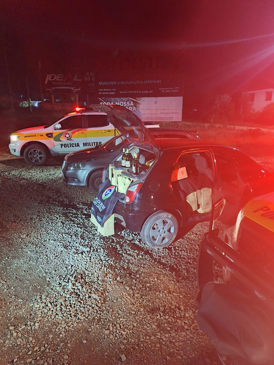 Durante a perseguição, que se estendeu até as imediações da BR-153, os veículos foram encontrados estacionados às margens da rodovia. No entanto, ao se depararem com a guarnição, os dois condutores fugiram a pé para uma área de mata e não foram localizados. Os veículos estavam com as chaves na ignição e em funcionamento.